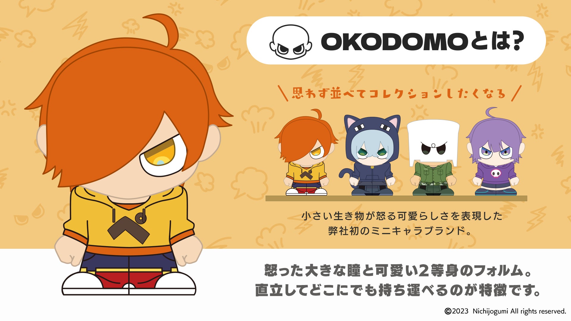 - 商品はラバーキーホルダーやフェイスポーチ、OKODOMOぬいぐるみなど