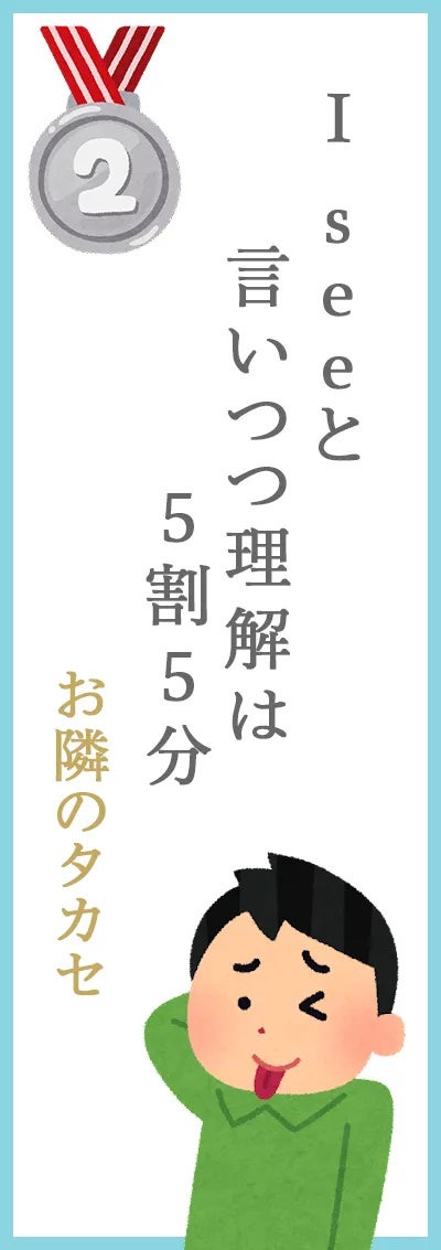I seeと 言いつつ理解は 5割5分(お隣のタカセ)