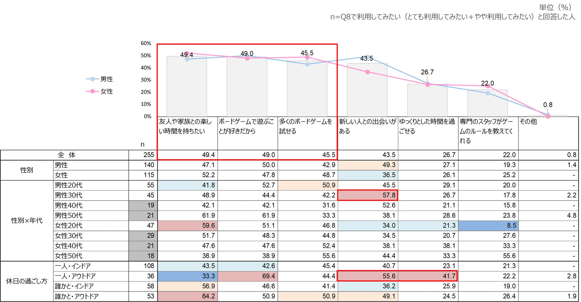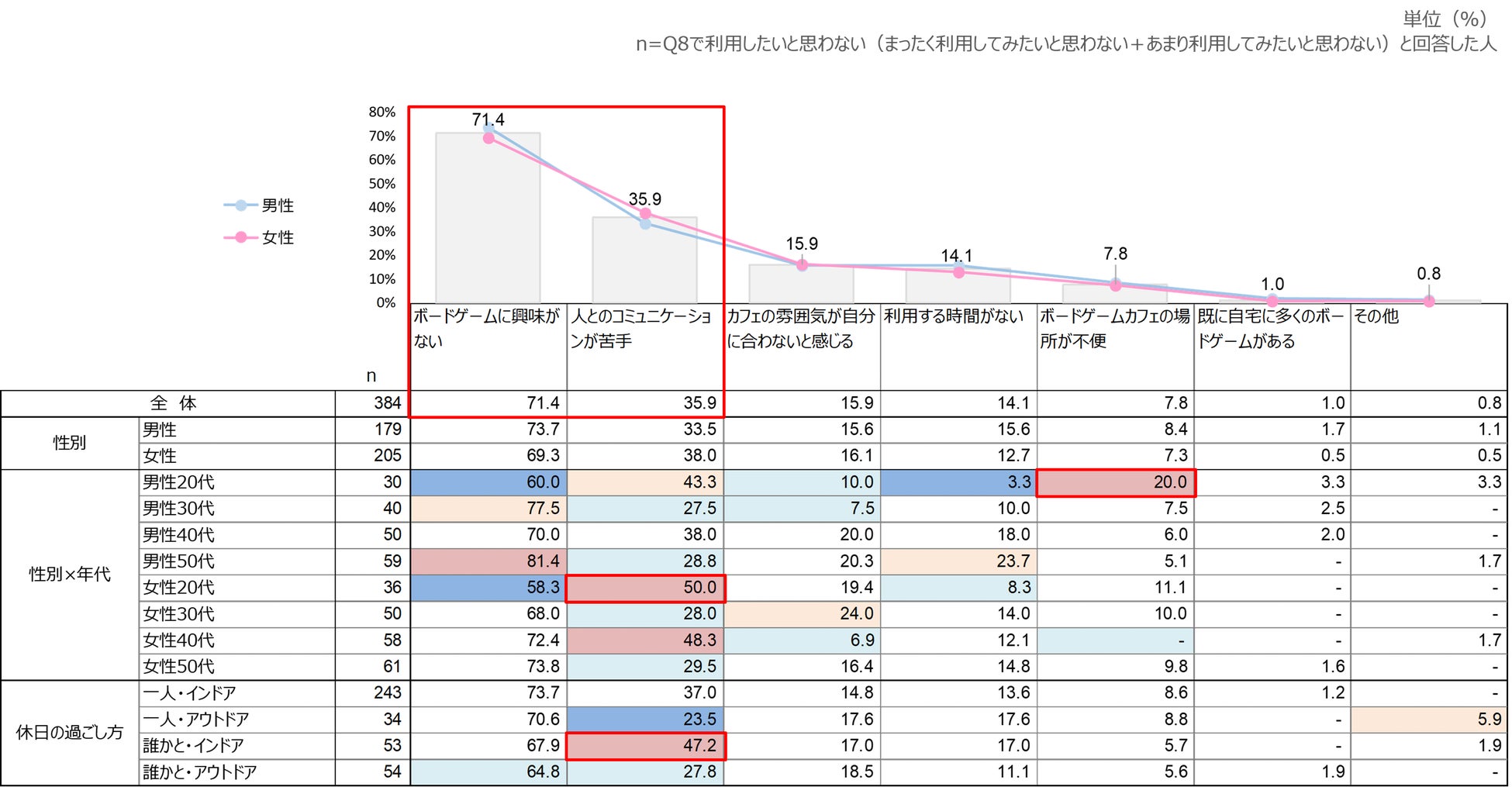 一方、女性20代の約半数は人とのコミュニケーションが苦手なため、ボードゲームカフェを利用したいと思わないと回答しました。