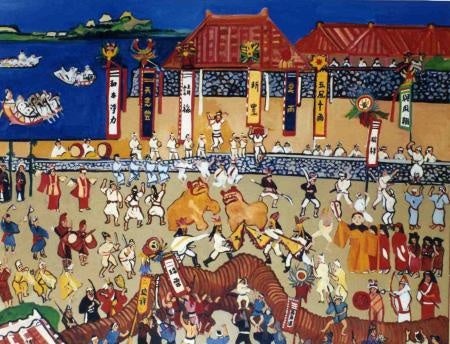 50代後半からは世界中の祭りを取材し、プリミティブな魅力と色彩に満ちた絵画を制作してきました。