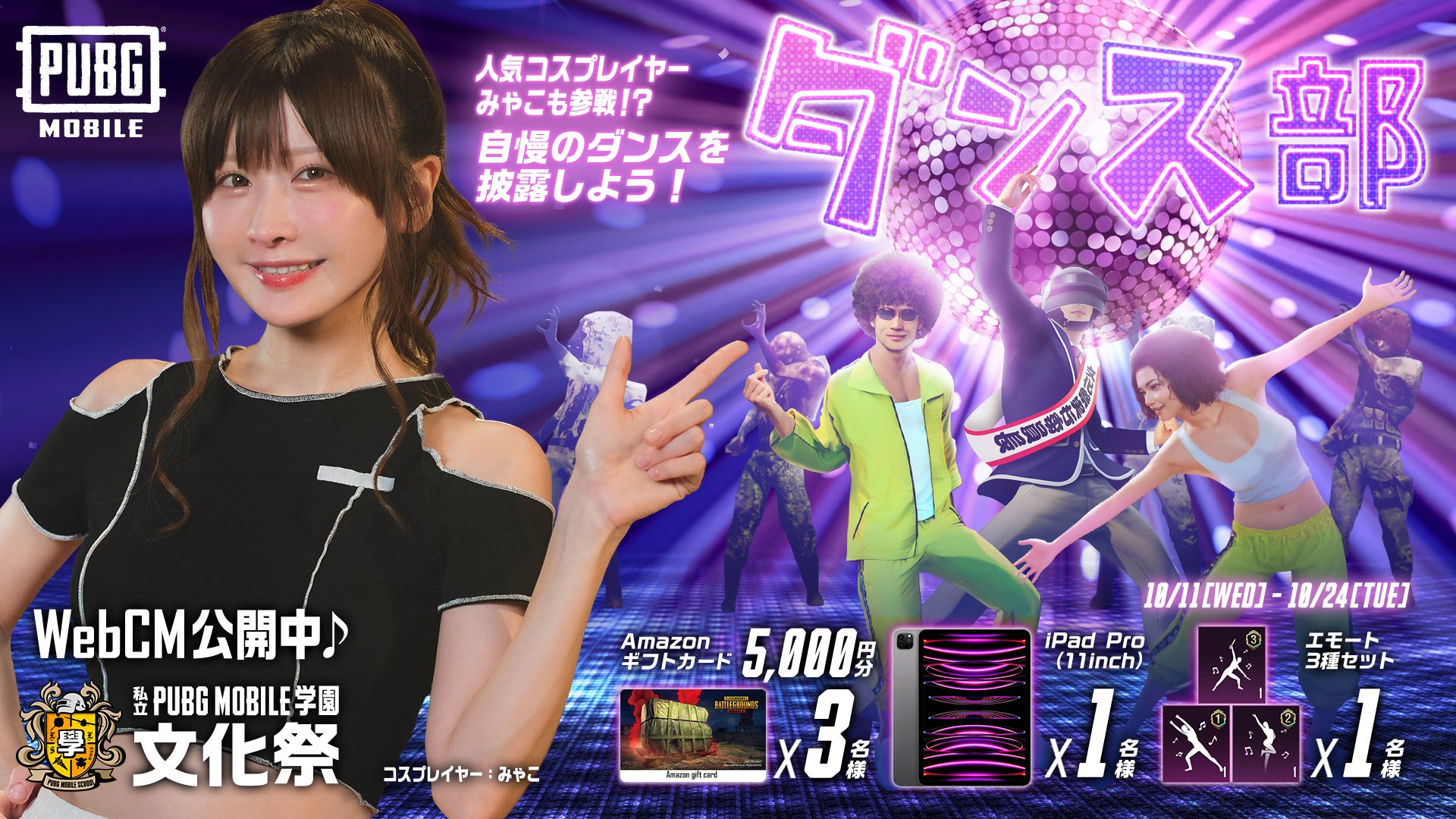 また、現在は「PUBG MOBILE学園 文化祭」も開催中で、人気コスプレイヤーのみゃこさんも参加しています。