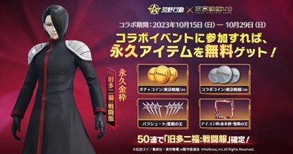 NetEase Gamesが開発・運営する人気バトルロワイヤルゲーム『荒野行動』が、10月15日から11月5日までの期間中、TVアニメ『東京喰種トーキョーグール:re』とのコラボイベント第2弾を開催します。