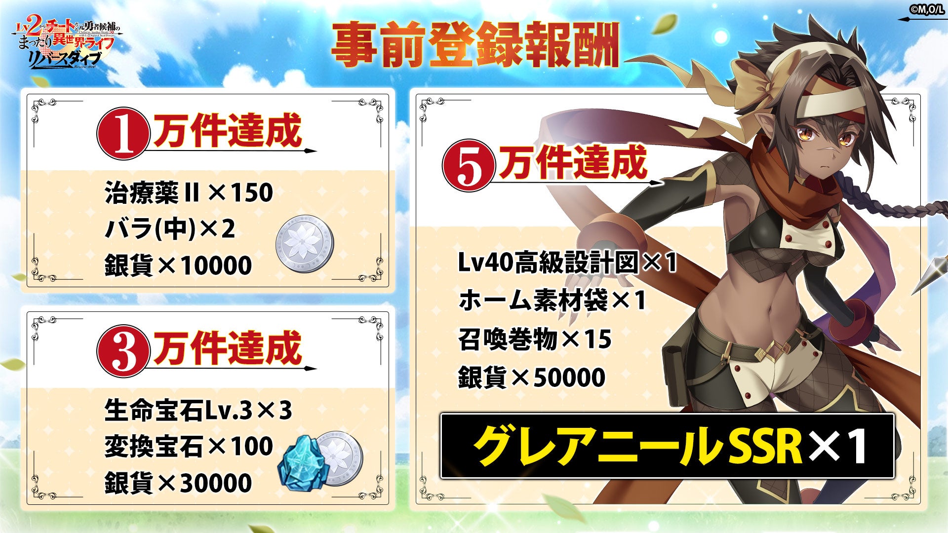 CTW株式会社は、人気作「Lv2からチートだった元勇者候補のまったり異世界ライフ」を原作としたMMORPGゲーム「Lv2からチートだった元勇者候補のまったり異世界ライフ リバースダイブ」を発表しました。