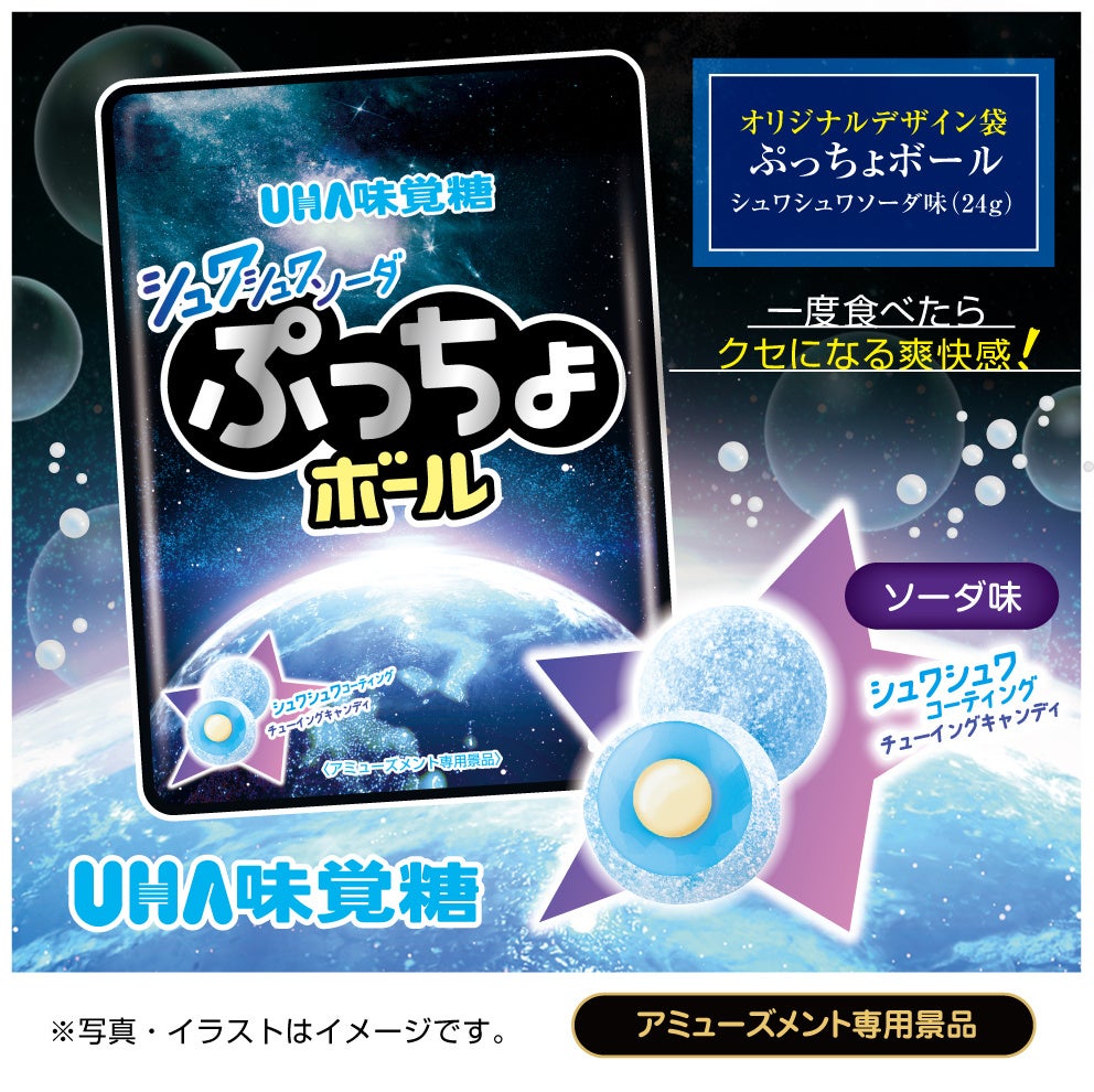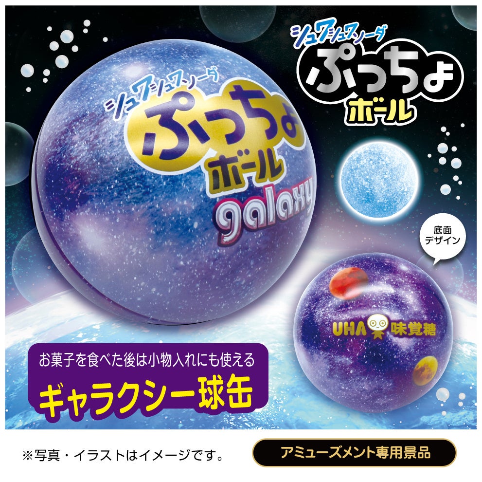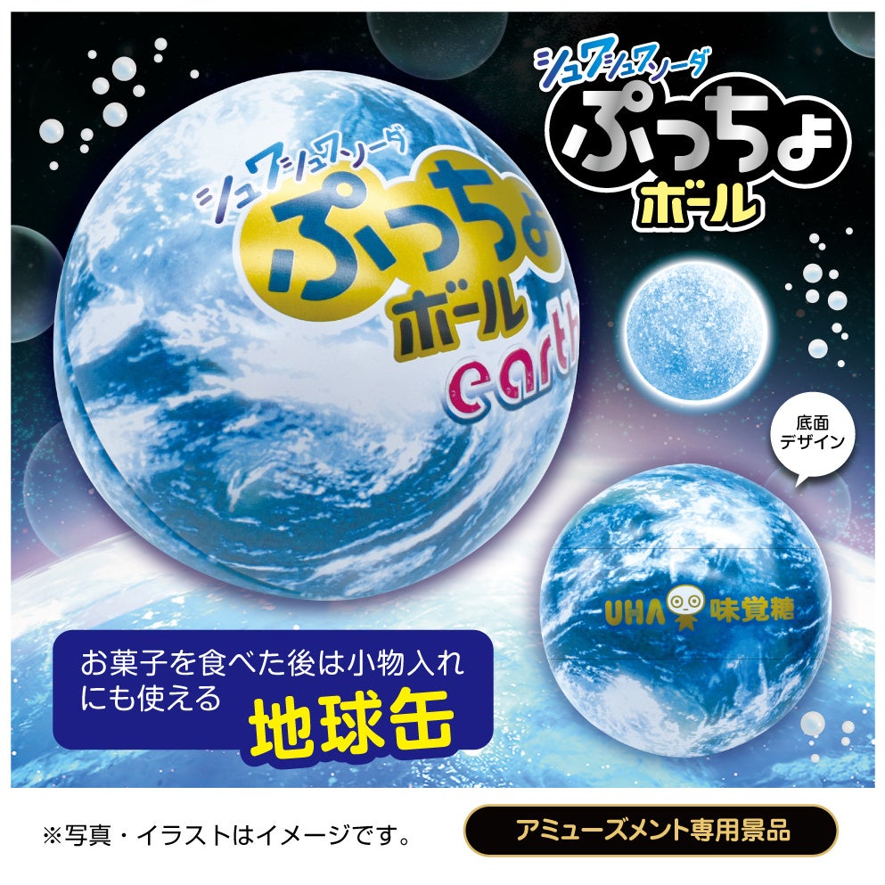 - 株式会社エストラストがUHA味覚糖の許諾を得て、シュワシュワぷっちょボール入りの「地球缶&ギャラクシー球缶」をアミューズメント専用景品として投入予定