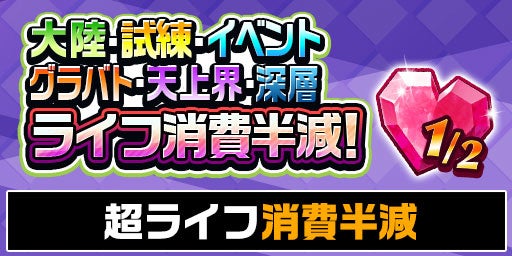 - 期間中は超ライフ消費半減や石版ドロップ率アップもあり