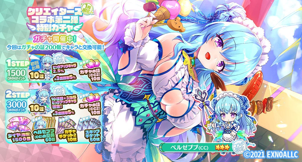 さらに、コラボ限定キャラクター「★3 ベルゼブブ(CC)」が期間限定でピックアップガチャに登場しています。