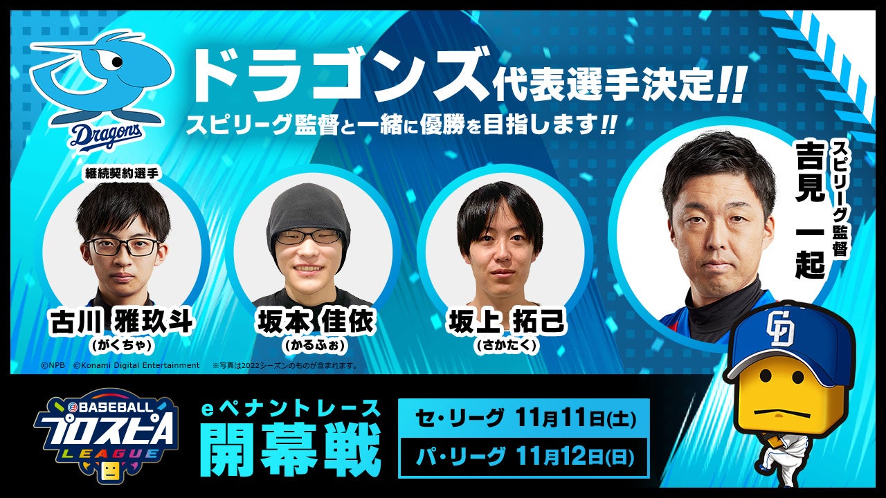 - NPBとコナミが共催するeスポーツリーグ「eBASEBALLプロスピAリーグ」の球団代表選手が決定