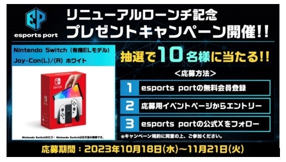 リニューアルを記念してNintendo Switch(有機ELモデル)ホワイトを抽選で10名にプレゼントするキャンペーンも実施します。