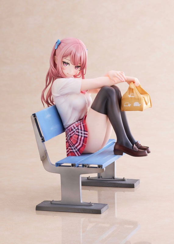 細部にこだわった髪やスカート、透ける下着のライン、ベンチの造形などが特徴です。