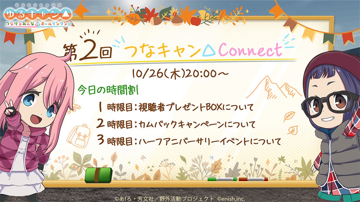 • 株式会社enishが「ゆるキャン△ つなげるみんなのオールインワン!!」でカムバックキャンペーンを開催