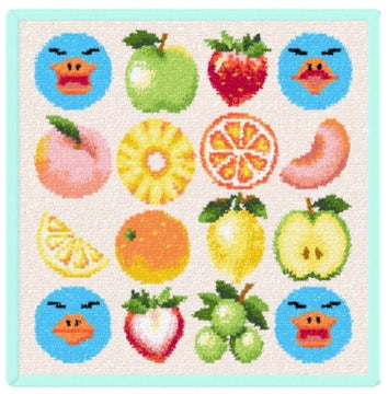 - イコちゃんとフルーツを詰め込んだハンカチで毎日を楽しく彩る