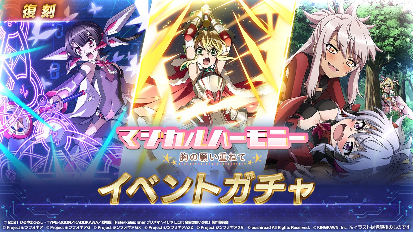 「戦姫絶唱シンフォギアXD UNLIMITED」にて、劇場版「Fate/kaleid liner プリズマ☆イリヤ Licht 名前の無い少女」コラボイベント「マジカルハーモニー 胸の願い重ねて」が2023年4月7日から復刻開催される。