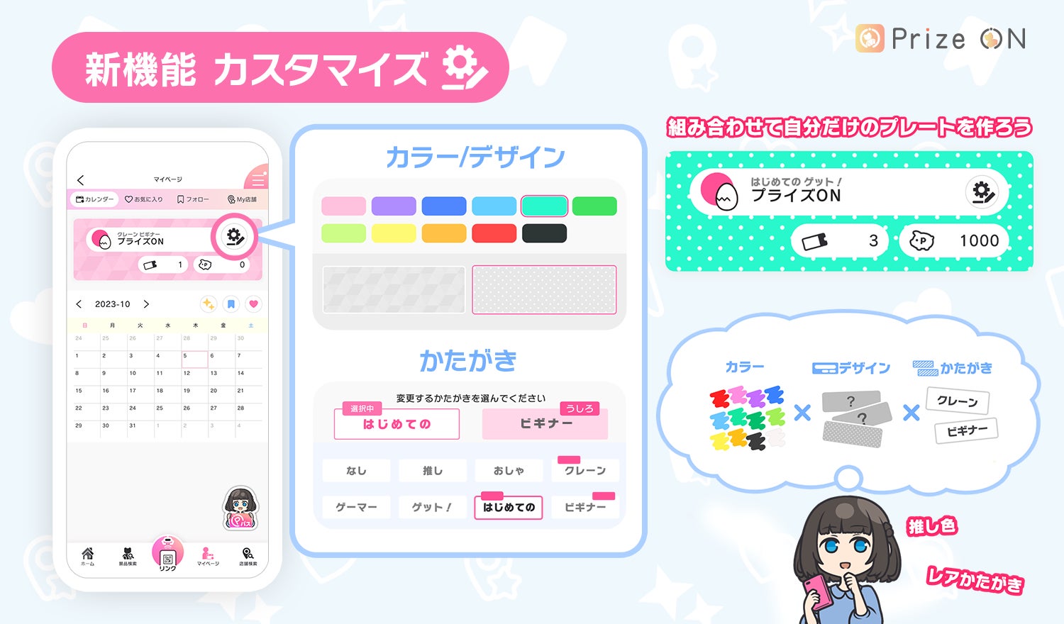 • 新機能には『Prize ONパス』、『クレキャラ』、『積みチャレ(お試し版)』、『ミッション』、『カスタマイズ』