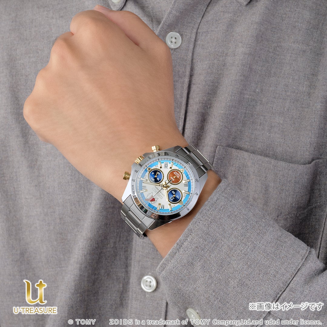 この腕時計は、ライオン型高速戦闘ゾイド「ブレードライガー」をイメージしたブルーとゴールドのカラーリングで、機体のディテールも施されています。