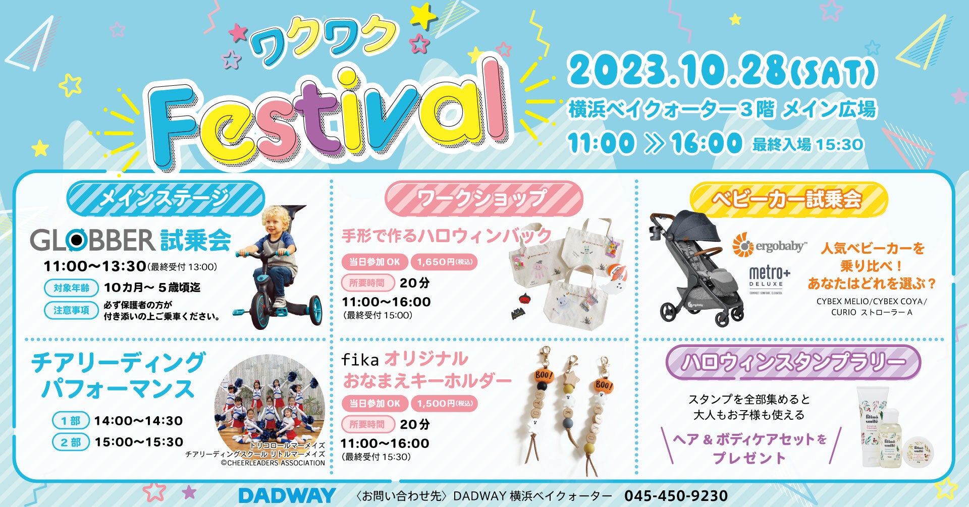 株式会社ダッドウェイは、2023年10月28日(土)に横浜ベイクォーターで『DADWAY ワクワクFestival』を開催します。