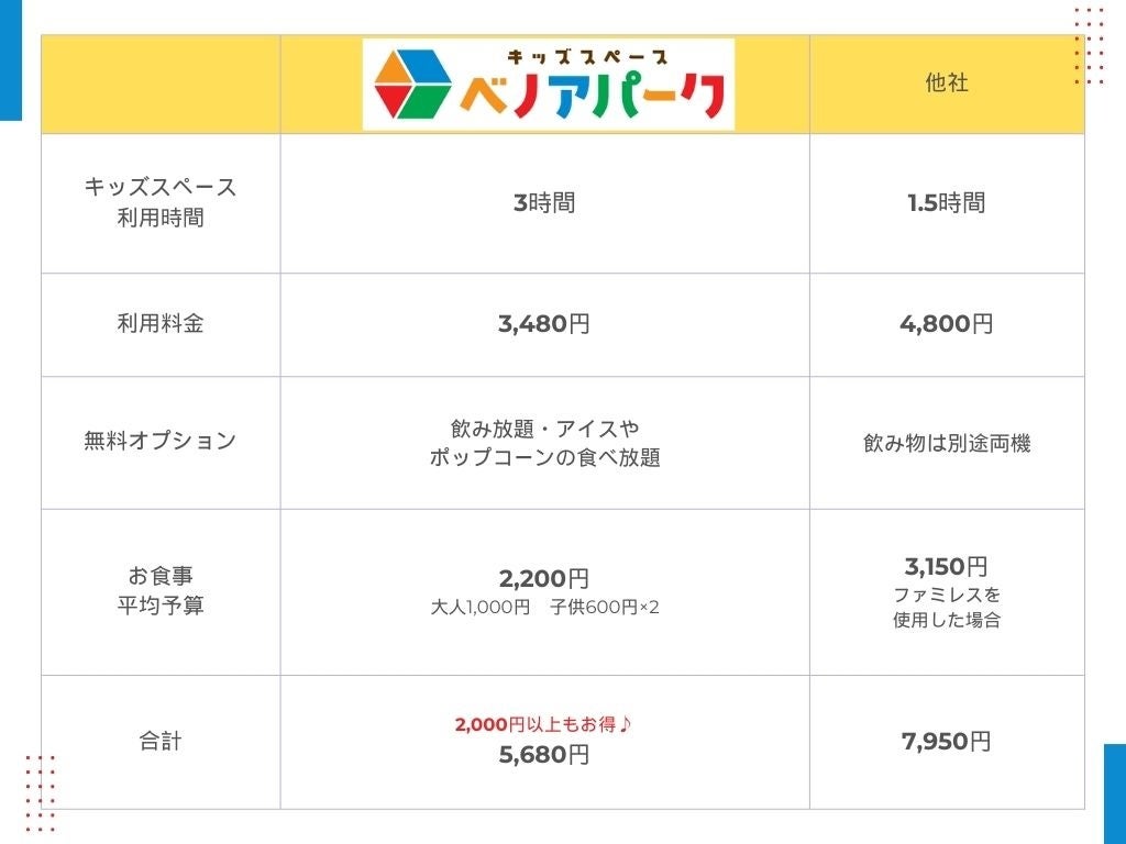 - 「べるべるパーク」は都内や大阪に展開しており、0歳から小学校低学年までの子供たちを対象にしている