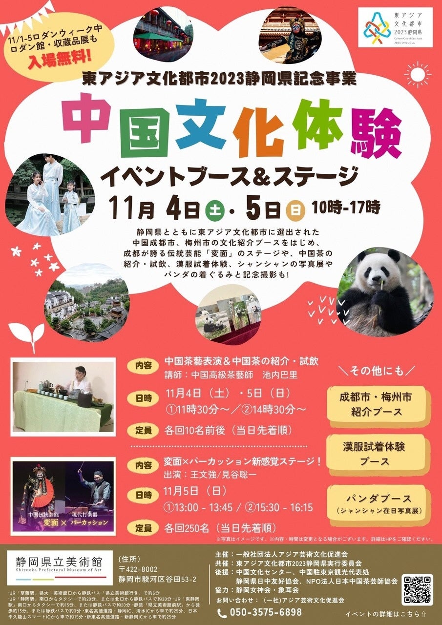 2023年11月4日(土)・5日(日)の2日間、静岡県立美術館で開催される『東アジア文化都市2023静岡県記念事業 中国文化体験イベントブース&ステージ』が注目を集めています。