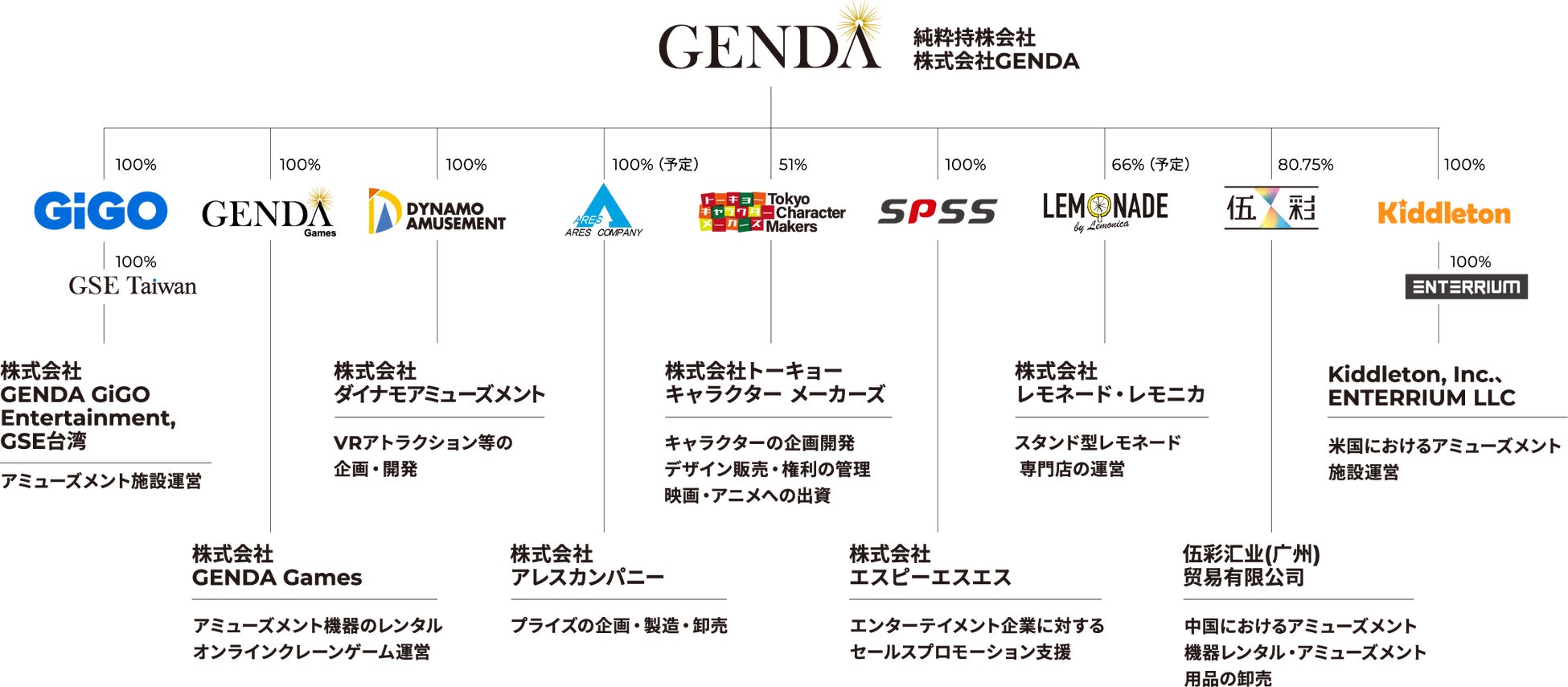 GENDAは現在、アミューズメント施設の運営やキャラクターライセンス事業などを展開しており、国内外で事業を展開しています。