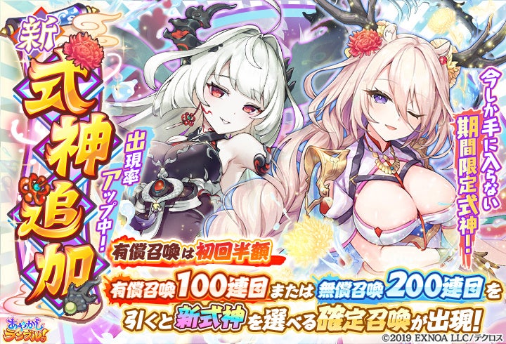 DMM GAMESが運営する『あやかしランブル!』に、期間限定で新たな★5式神「ミカ」と「キクリヒメ」が追加されました。