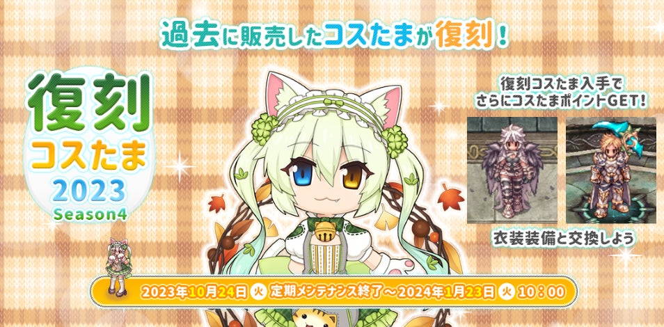 さらに、過去のコスたまが復刻され、衣装装備と交換できる「復刻コスたま2023 Season4」も開催されます。