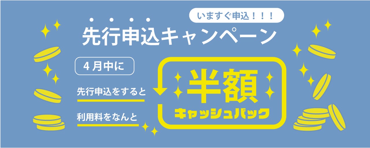 先行申し込みキャンペーンでは、年間利用料金の半額にあたる3万円がキャッシュバックされます。