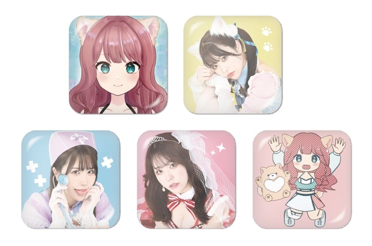 - グッズ、コラボ、オンラインストア、写真集、Tシャツ、ピクチャースタンド、エコバッグ、缶バッジ、ステッカー、応援サイト、ゲーム