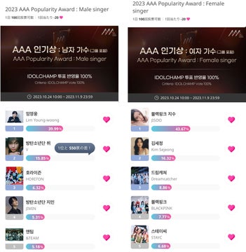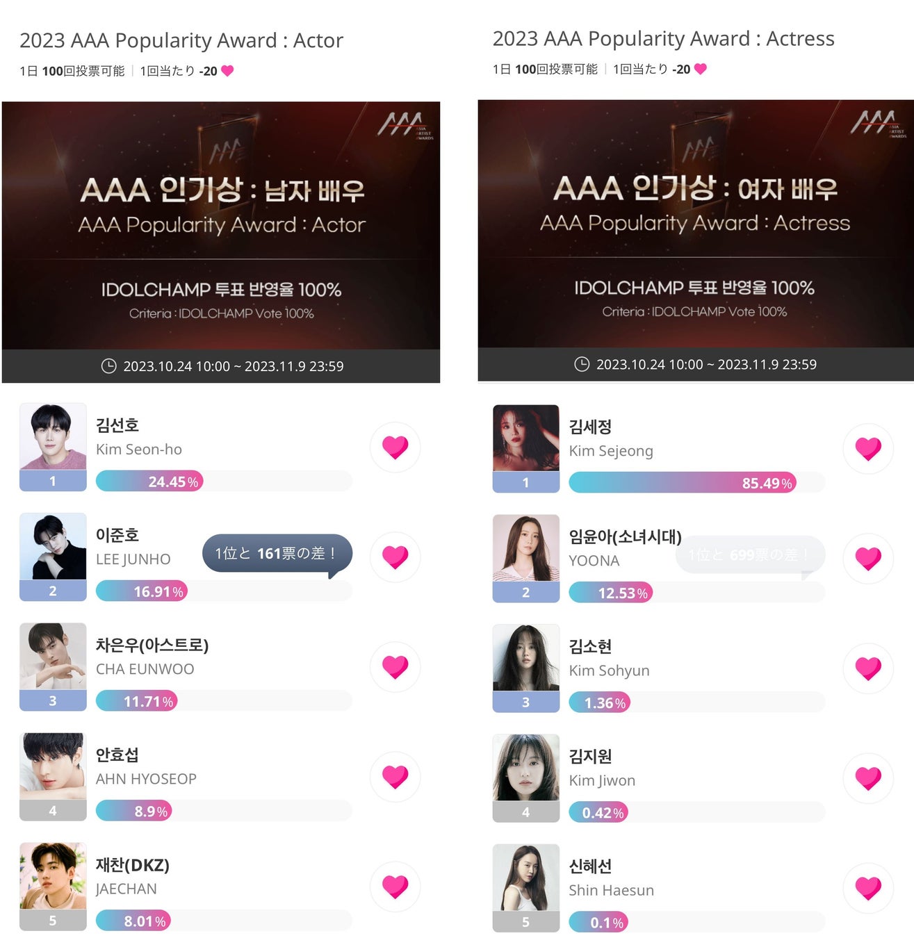 - 投票期間は10月24日から11月30日までで、男優女優男性歌手女性歌手の4部門で行われる