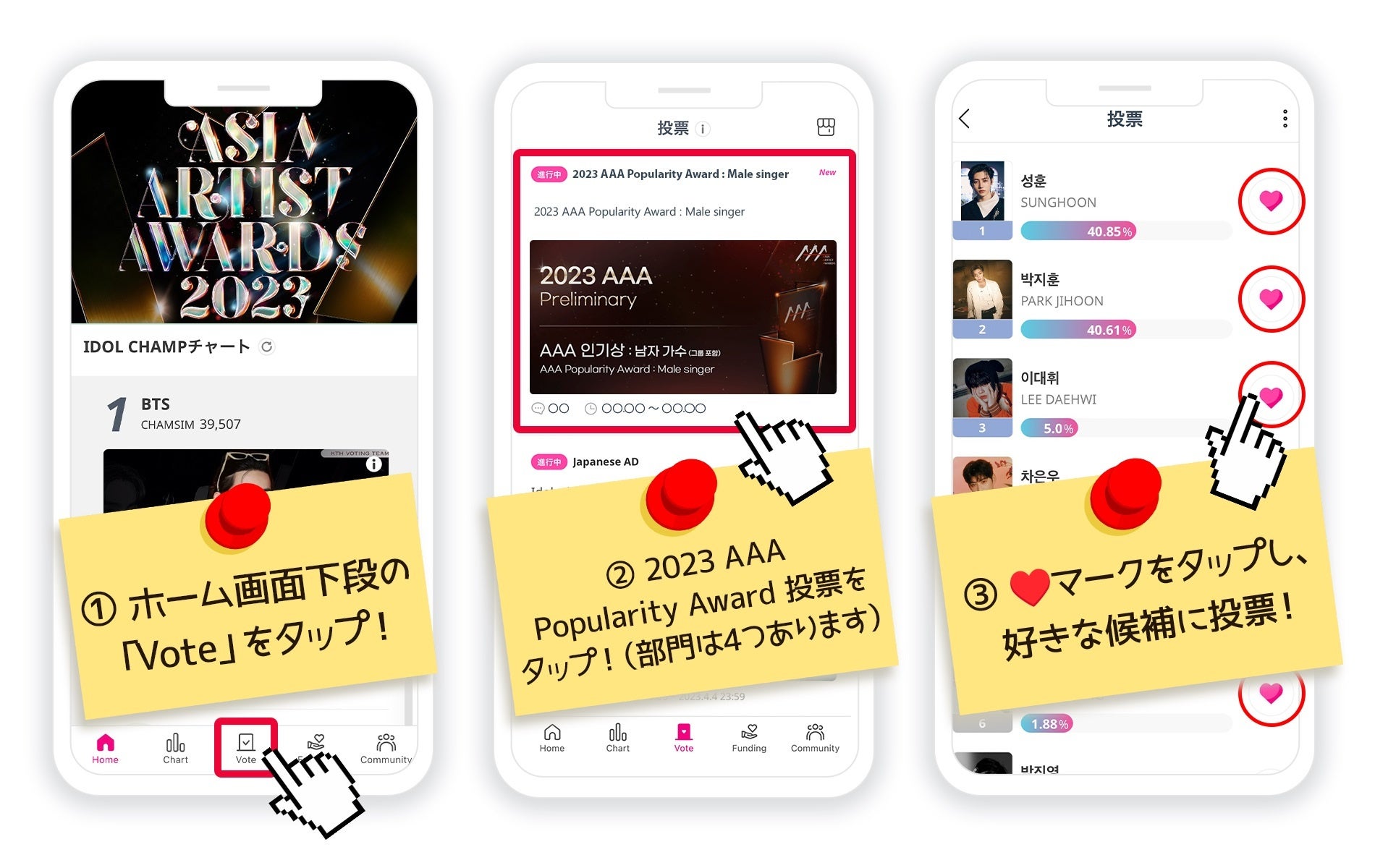 - 投票はIDOLCHAMPアプリから行える