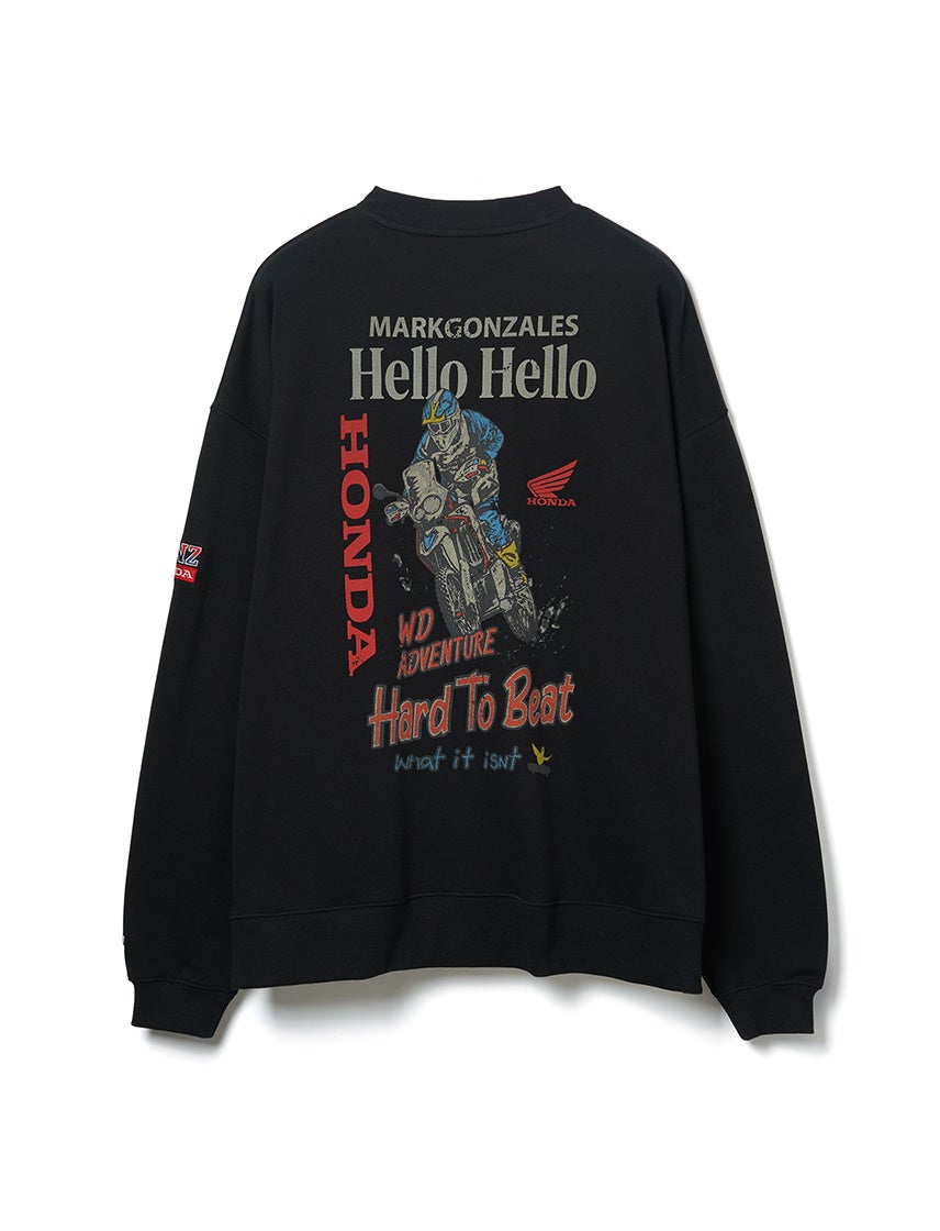 クルーネックBIGトレーナーには、タフな走りが楽しめる「CRF250L」のグラフィックが採用され、プリントにはヴィンテージ風の加工が施されています。