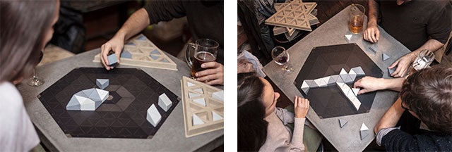 16個の三角形を組み合わせ、滑らかな表面を作ることがルールで、完成したら一度きり。