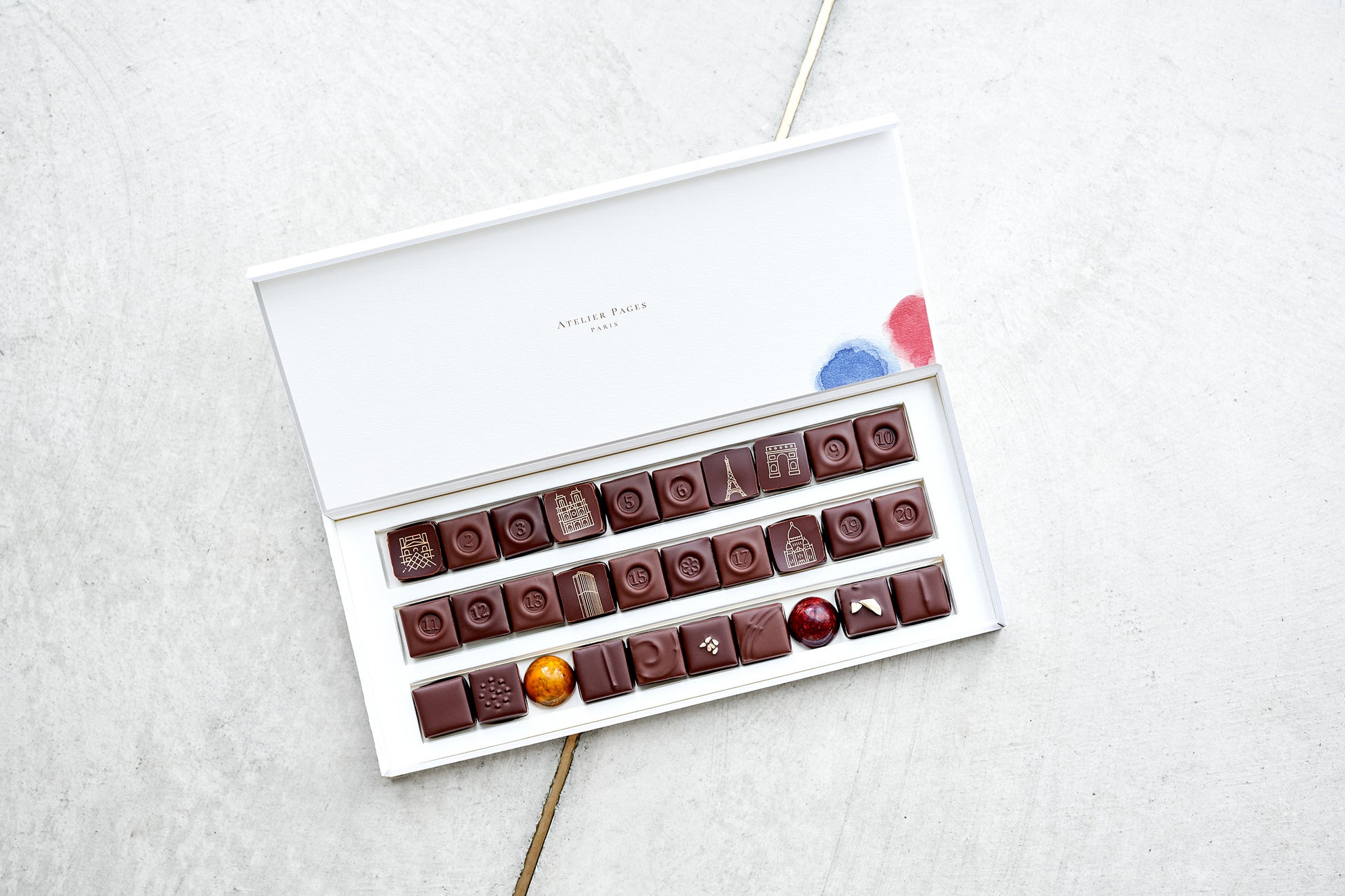 ショコラはパリの20のアロンディスマンをイメージしており、定番の20種類と新しい味の組み合わせが8種類、合計28種類が販売されます。