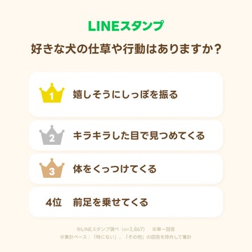 - 犬の仕草で「しっぽを振る」が1位、次いで「キラキラした目で見つめる」