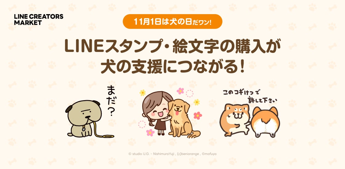 LINEスタンプでは、犬の保護・支援に貢献する特別企画が実施されており、売上の一部が寄付されます。