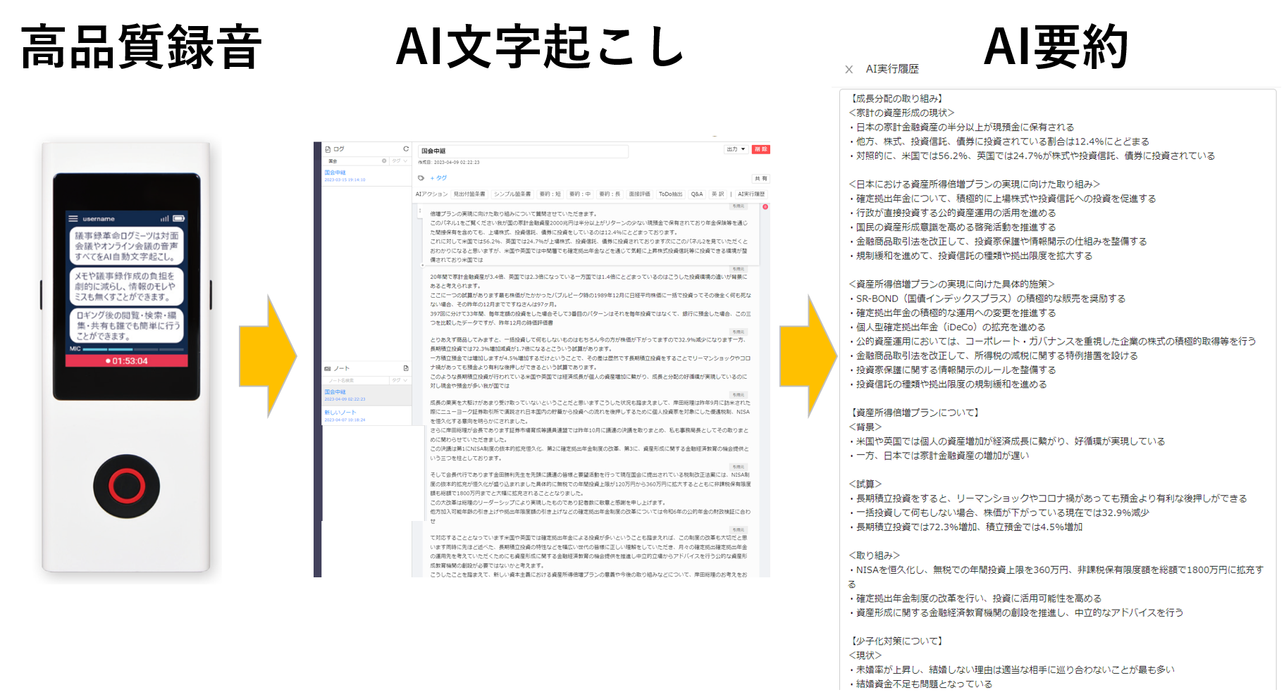 - AIによる会議の文字起こしテキストの要約分析英訳、面接の評価、商談の分析、アクションリストの抽出が可能に