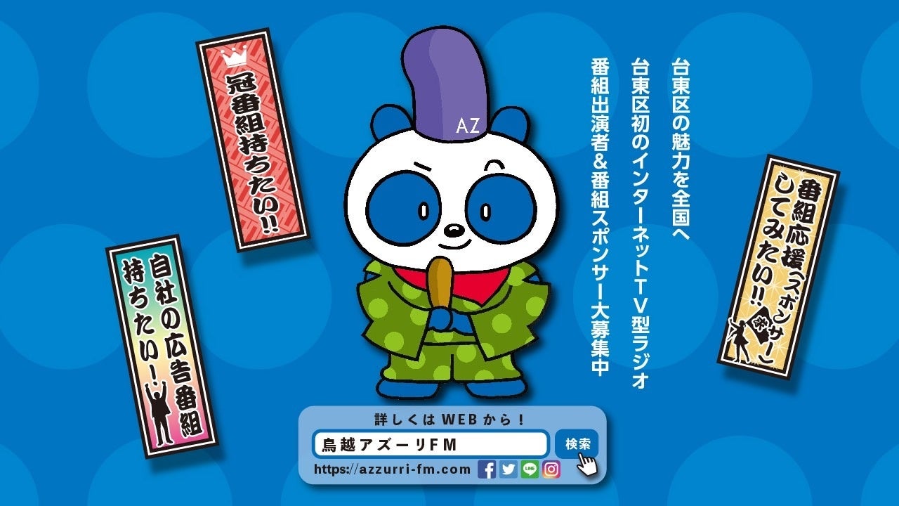 - 鳥越アズーリFMは台東区鳥越を拠点にインターネットTVを配信