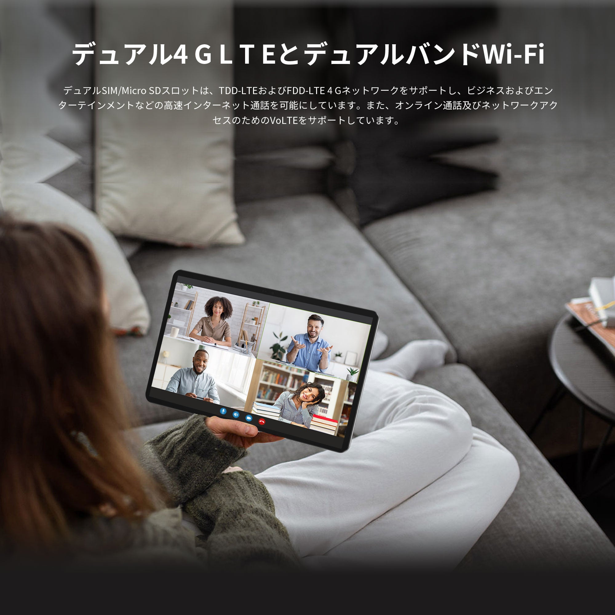 【デュアル 4G LTE 通話 タブレット 10インチ Wi-Fiモデル】第4世代移動通信4G/ LTEに対応したSIMスロット搭載しており、TDD+FDD 4Gネットワークコール/インターネットアクセスをサポートします。 また、VoLTEとキャリアアグリゲーションをサポートして、通話とインターネットへの同時アクセスを実現できます。2.4Ghzおよび5Ghz Wi-Fiまたは4G接続を備えた超高速4G LTEネットワークで実行するように設計されており、いつでもどこでも接続を維持しています。Android12はSkype、電話、テキストメッセージを送信できます。 Facebookなどのソーシャルソフトウェアを使用して、またはゲームをプレイするためにそれを使用してください。世界はあなたの手のひらにあります。 (デュアルSIMまた 1 SIM + 1 SDカードをサポートします)