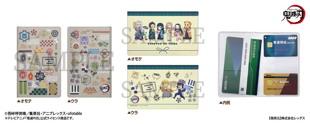 - 通帳ケースAとBは炭治郎たちのモチーフや好物のアイコンを散りばめたデザイン