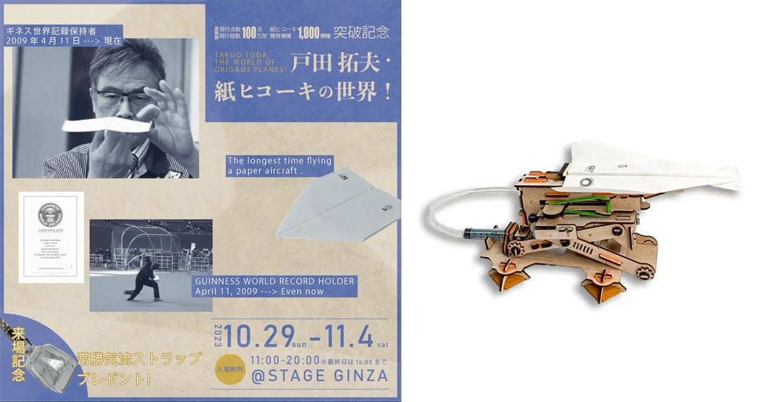 戸田拓夫氏の初の個展「戸田拓夫・紙ヒコーキの世界!」が2023年10月29日に博品館TOY PARK銀座本店で開催されます。