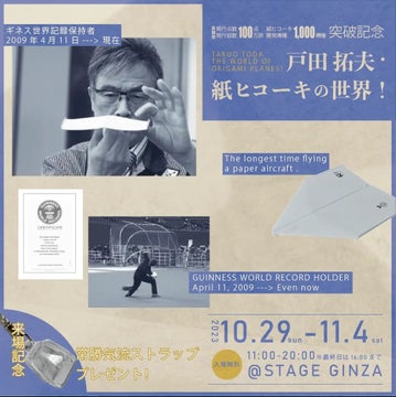 - 戸田拓夫氏の初の個展「戸田拓夫紙ヒコーキの世界!」が開催される