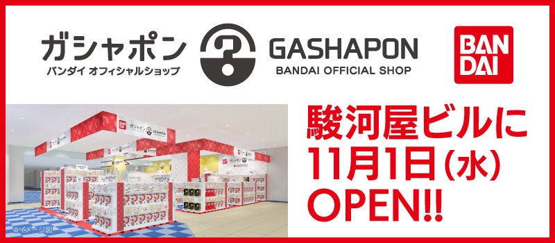 バンダイ公式の大型カプセルトイ専門店が、駿河屋本店駿河屋ビルにオープンしました!約310種類ものガシャポンがずらりと並び、バンダイオフィシャルショップだけの商品や豊富なラインナップを楽しむことができます。