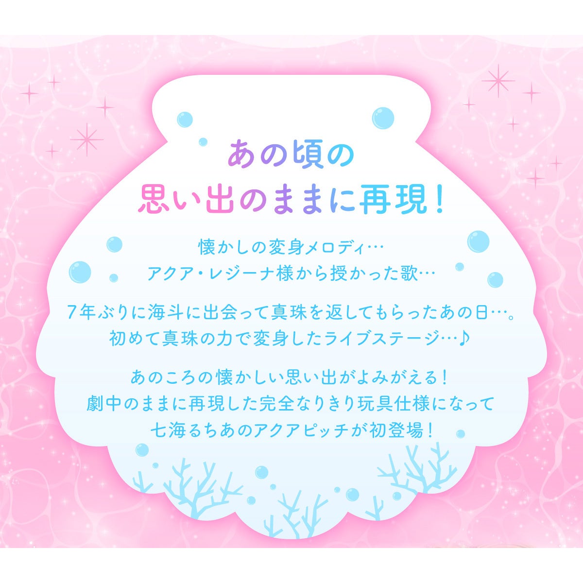 「あみあみ」は、テレビアニメ『マーメイドメロディーぴちぴちピッチ』の放送20周年を祝して、七海るちあの変身アイテム「アクアピッチ」をなりきり玩具として商品化しました。