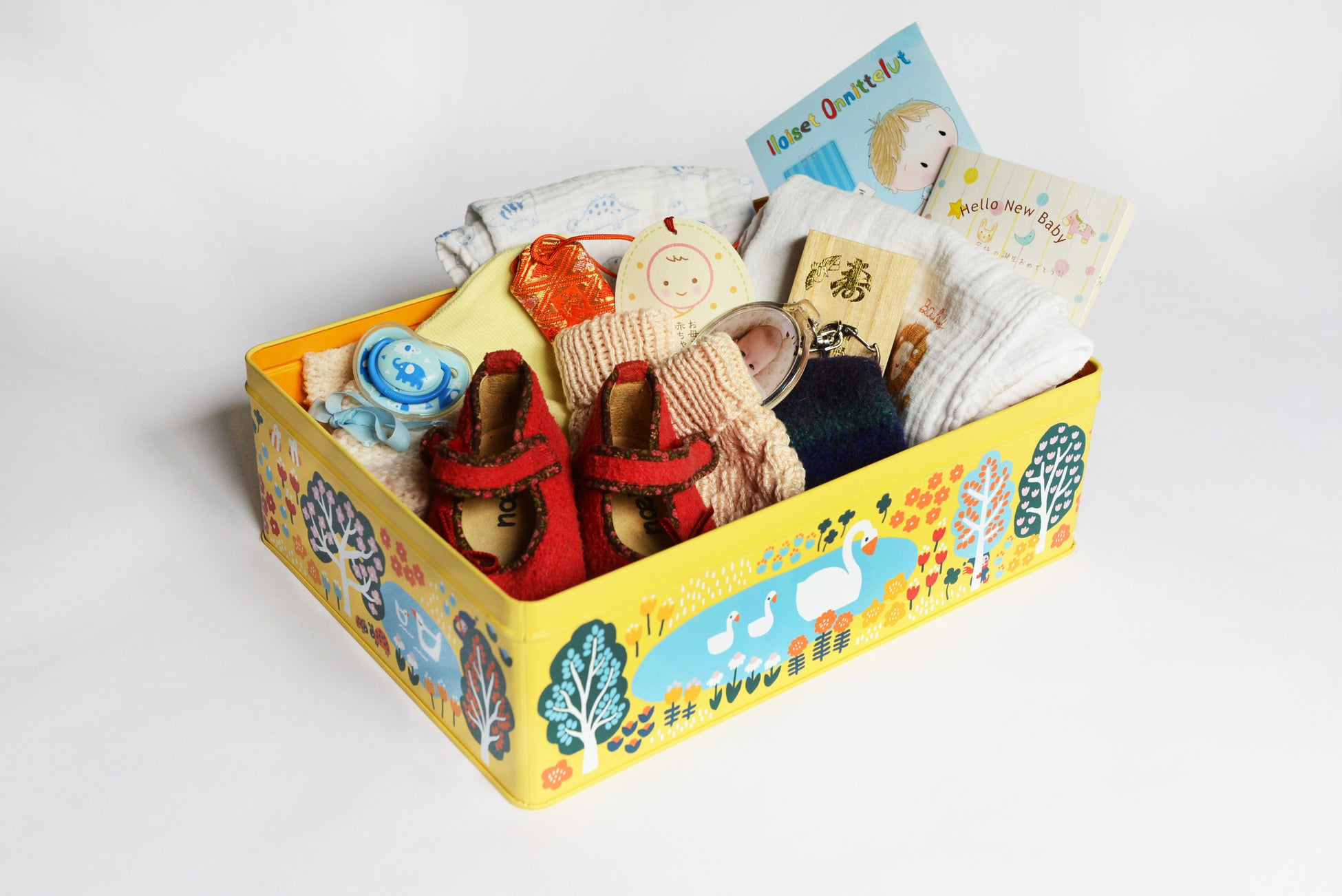 この事業は、子供の成長と安心した子育て環境をサポートするために実施されるもので、ベビー服やおもちゃなどの育児グッズを詰め合わせたハイブリッド型のギフトボックスです。