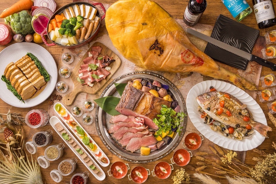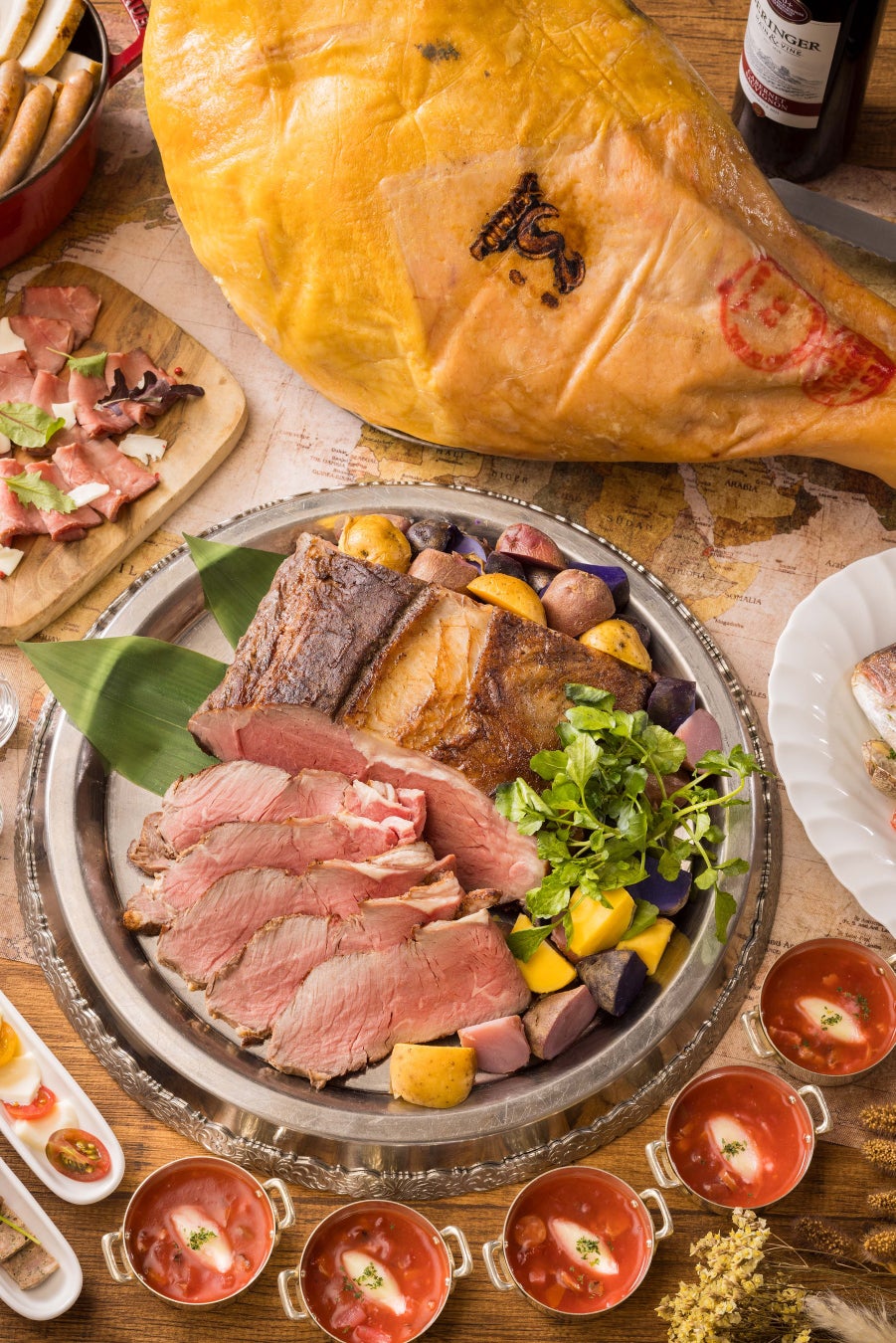 テーマは「世界のグルメ旅行」で、黒毛和牛とオーストラリア産サーロインのローストビーフの食べ比べや、スペインのハモンセラーノ(生ハム)などが楽しめます。