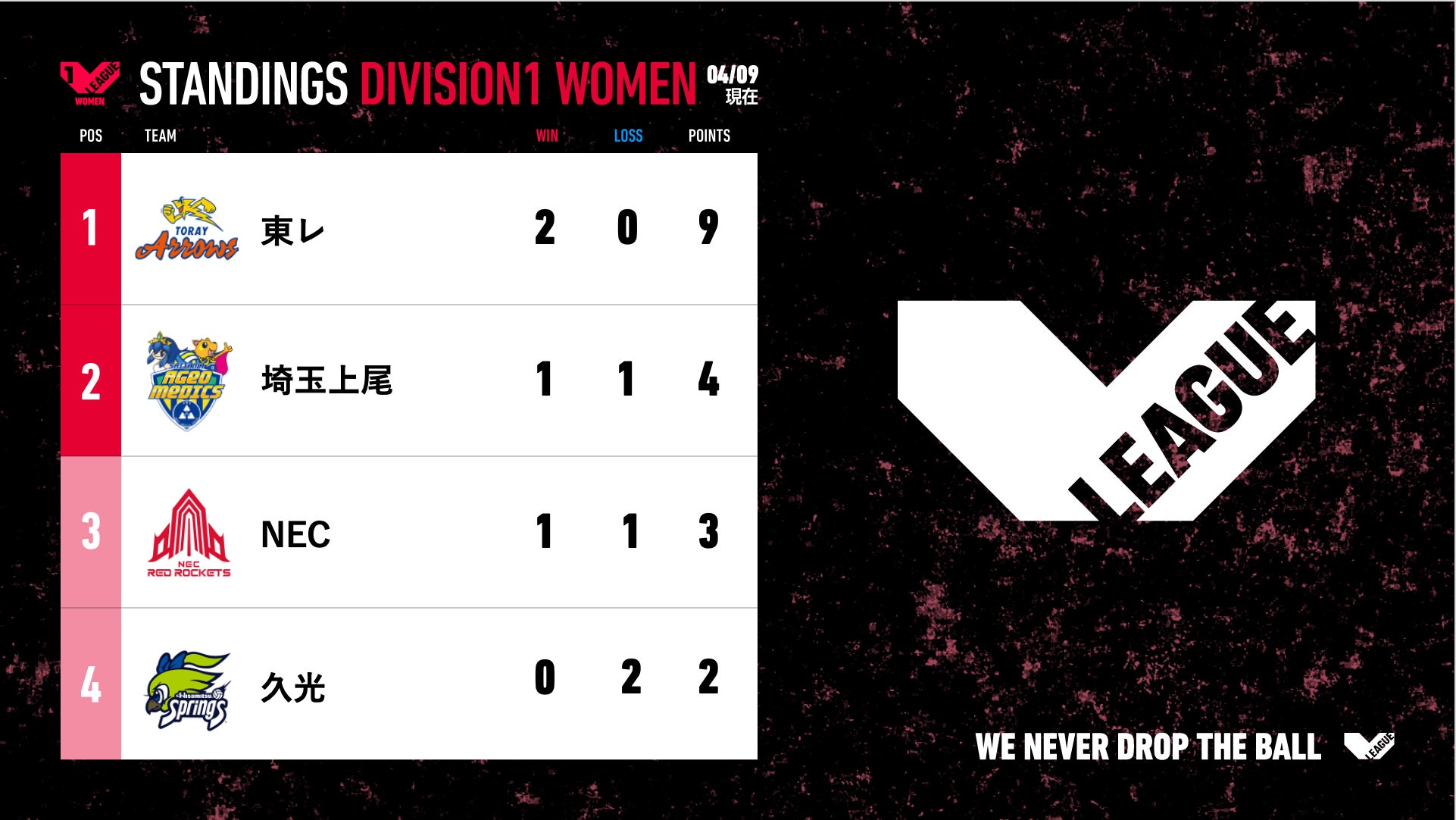 ■ 2022-23 V.LEAGUE DIVISION1 WOMEN V.FINAL STAGE ファイナル4順位表(4月9日現在)