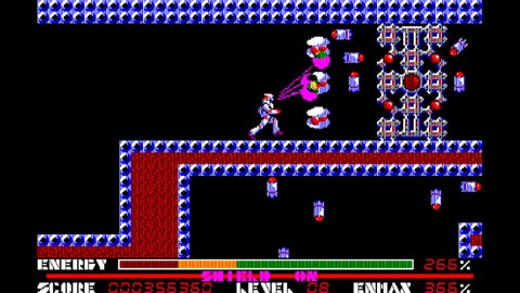 全16面のステージで、敵との戦いでは追尾レーザーやバリアを巧みに使いながら進んでいきます。