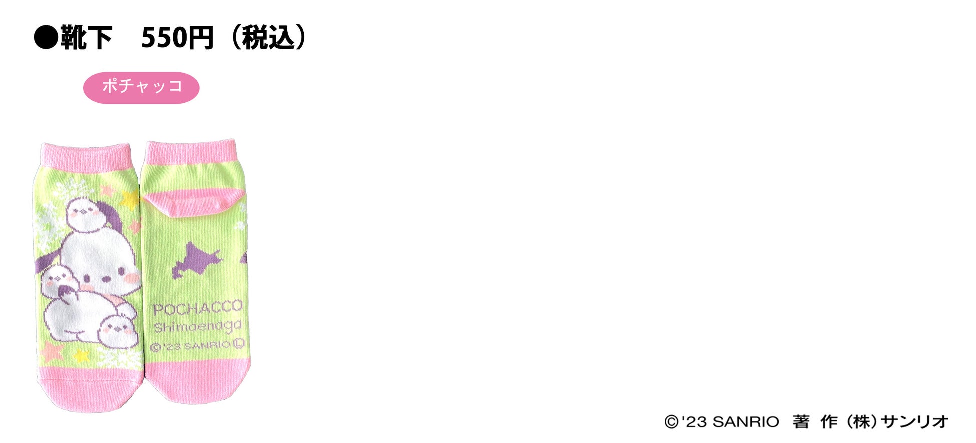 - ポチャッコの靴下やシナモロールとクロミのランチトートバッグもあり