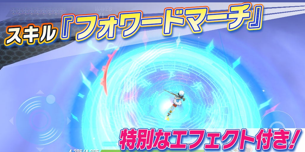 所持スキル「フォワードマーチ」は、一定範囲にダメージを与えながら、3秒毎にステージ全体の敵味方の弾をチップに変換する効果!
