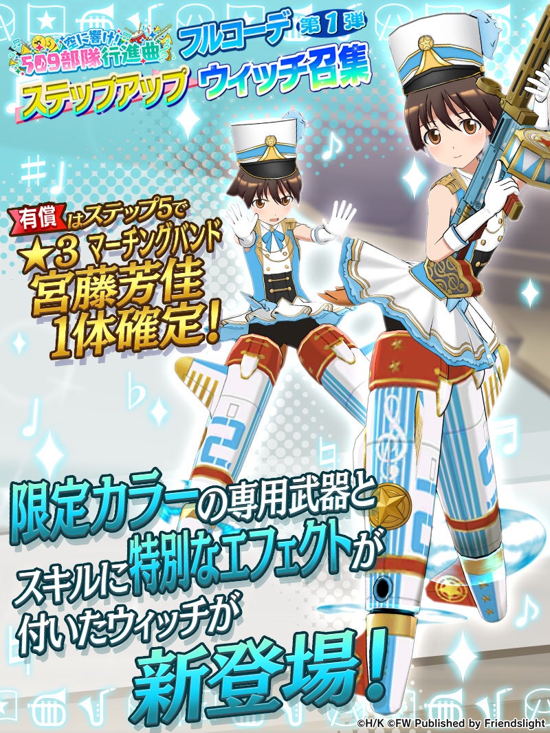 新登場のフルコーデウィッチ「マーチングバンド 宮藤芳佳」、「マーチングバンド 服部静夏」もラインナップされている特別な1回召集を1日1回、無料で開催します!