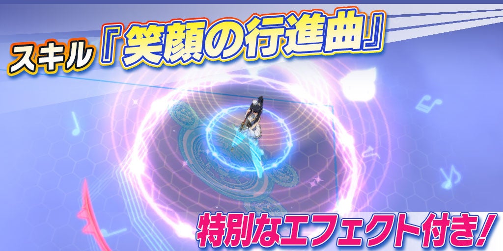 所持スキル「笑顔の行進曲」は、効果時間中、エネミースコアが200%アップする効果!