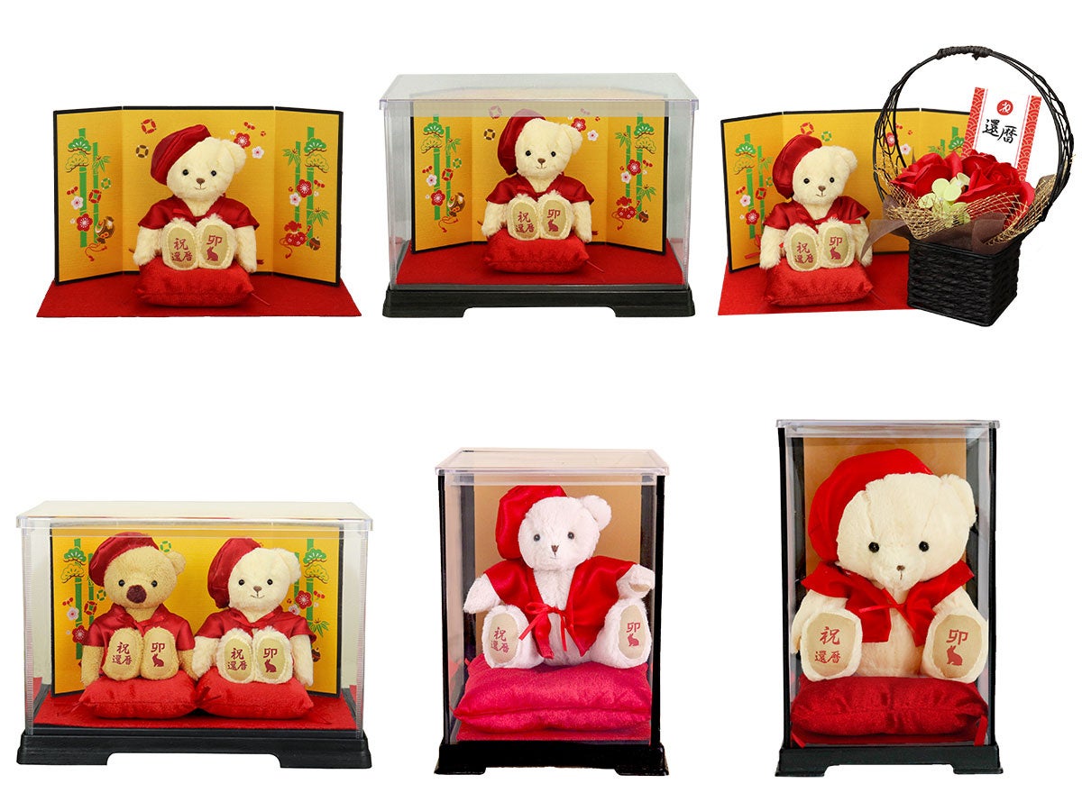 - 「還暦ベアプチギフト」はリーズナブルな価格で提供され、干支と祝還暦がプリントされたユニークなテディベア